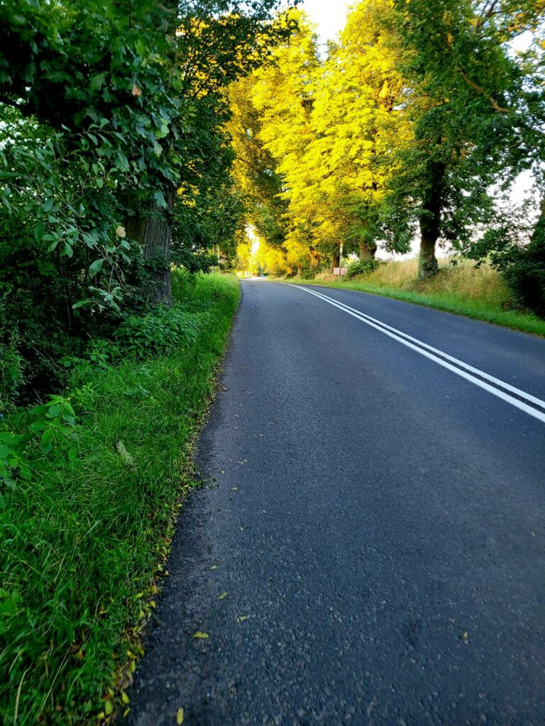 Słabszy moment: asfaltowa droga i bliskość samochodów